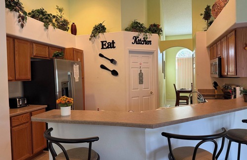 This beautiful waterfront villa is situated on a quiet cul-de-sac street where you can enjoy all the outside areas. The villa is located 5 - 25 minutes from major attractions such as Disney World, Sea World, Universal Studios, and others. The development is just North of Hwy 27 & 192 and just 10 minutes to the gates of Disney World.