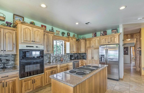 Pack your bags for this Apache Junction home! Part of the Superstition Mountain Community, this vacation rental is fitted with 3 bedrooms, 2 bathrooms, ample outdoor amenities, and access to nearby putting greens and trails. A wrap-around porch and 2 gas grills accommodate unforgettable outdoor meals for your group, and a private hot tub is the perfect way to end the night. With such breathtaking views, you’ll never want to leave, but be sure to explore the nearby mountain trails and lakes!