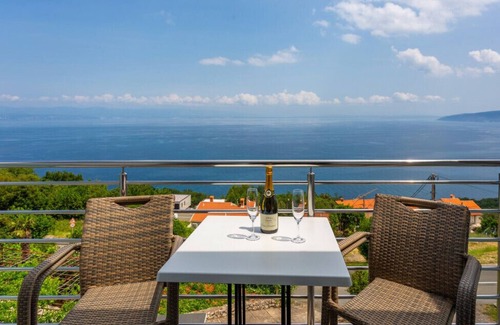 Discover a charming one-bedroom apartment nestled in the tranquil city of Mošcenice, offering a perfect retreat for couples seeking a peaceful getaway. This bright and beautiful 45m² apartment provides a comfortable and inviting space with stunning sea views.The apartment features a cosy bedroom with a queen-size bed, ensuring a restful night's sleep. The well-appointed bathroom includes a convenient shower, providing all the necessary amenities for a comfortable stay. An American-style kitchen is fully equipped with modern appliances, including an induction cooktop, fridge, freezer, oven, dishwasher, coffee machine, and a complete set of kitchenware.Enjoy the convenience of complimentary WiFi and a satellite TV for entertainment. The apartment is air-conditioned, ensuring comfort during warmer months. The outdoor spaces are a highlight, with a garden, balcony, terrace, and barbecue area perfect for relaxing and enjoying the Mediterranean atmosphere.Parking is available on-site with one private outdoor parking space. The location is ideal, just 2 km from the rock beach of Mošcenicka Draga and a short distance from a supermarket. Lovran is 10 km away, and the Omišalj airport is within 40 km, making it convenient for travellers.Please note that the apartment does not allow pets or smoking, and is best suited for a maximum of two adult guests. With its serene setting and thoughtful amenities, this apartment offers an ideal base for exploring the beautiful Croatian coastline.