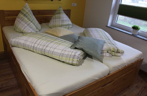 The apartment is about 20 square meters and is located on the ground floor and consists of a combined living room with open kitchen. You sleep on comfortable upholstered beds. In addition, the sleeping area is equipped with a wardrobe, a bedside table and reading lamps. A table and comfortable upholstered chairs are available for you in the living area, as is TV / radio. The mini kitchen is equipped with two hot plates and a refrigerator. Coffee machine, kettle and toaster are also available. Shower / toilet are available. Bed linen and towels are provided. When the weather is nice, you can make yourself comfortable on the terrace.