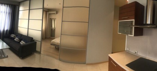 For rent one-room apartment in a new building on the street. 36 b Yevhena Konovaltsia street (21st floor) A one-room apartment with an area of 52.4 sq.m. is taken for long-term or short-term rent. Convenient location within a 3-minute walk from Pecherskaya metro station. The apartment is in excellent condition (European-quality renovation). Fully equipped with furniture and modern appliances (built-in stove, extractor hood, vacuum cleaner, iron, kettle, refrigerator, air conditioning, intercom, TV, Jacuzzi). The kitchen is combined with the living room. In any case, there is a spacious dressing room