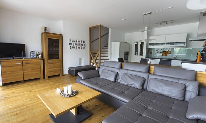 The apartment has a parking space in the underground garage which is free for our guests. An elevator takes you comfortably from the underground car park to the third level of the house. There are further parking spaces in front of the house.