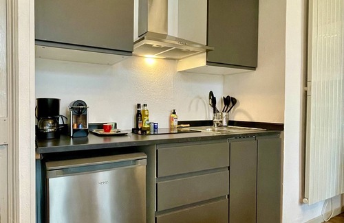 On the 1st floor of a small building which formerly housed the Verdun tannery workshops, this chic and completely renovated apartment opens onto a pretty living room with sofa, coffee table, flat screen TV, board games, fiber optic wifi and an open kitchen fully equipped including a multi-function robot and a Nespresso machine.