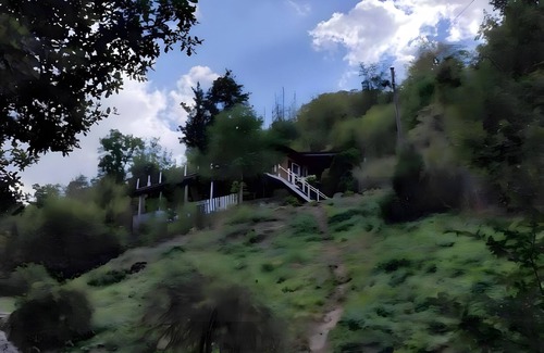 The former hunting lodge has an open, fully equipped kitchen and a very cozy living room with a wood-burning stove. The bedroom offers a fantastic view of nature and the starry sky from the extra raised box-spring bed. The second double bed is located in an open loft above the living room, directly under the roof - very cozy and accessible via a wooden staircase from the living room. The bathroom is equipped with a large walk-in shower, WC and washbasin. A washing machine and tumble dryer are available for you to use in the cellar. Various terraces and resting areas around the hunting lodge invite you to relax and the main terrace with its more than 60 square meters offers plenty of space to enjoy and relax and offers an extraordinary view over the surrounding forest. Important note: The house is not barrier-free and access is only possible via a steep footpath - but it's worth it!