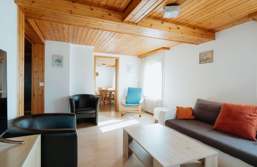 72 m2. 1 pet/ dog allowed. More information by the provider: The well-appointed flat accommodates 5 persons. The spacious living room with TV is in the centre of the flat. The kitchen with oven, refrigerator, electric stove and dining table which seats 5 persons is next to the living room. The three bedrooms (2 x queen-size bed, 1 x double bed) are located on the North side. The bathroom with bathtub/lavatory is small but nicely furnished. Free WiFi is available inside the house.