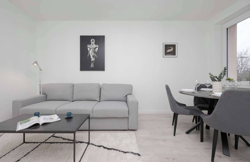A spacious and elegant apartment with a modern design, it can accommodate up to 4 people. The interior includes a bright living room with a kitchenette, a cosy bedroom, a luxurious bathroom and a functional hallway. The living room has been decorated in a minimalist style with a dominance of bright colours. It is furnished with a comfortable sofa, a coffee table and a Smart TV, providing a place ideal for relaxation. Large windows guarantee excellent interior lighting and views of the surrounding area. The kitchenette is a combination of style and functionality. Equipped with modern appliances such as a fridge with freezer, induction hob, oven and dishwasher, it will meet the expectations of any cooking enthusiast. A spacious worktop and a set of essential kitchen accessories will make daily meal preparation possible. The bedroom is an oasis of calm, with a comfortable double bed. Stylish accessories and pastel accents create a cosy atmosphere conducive to relaxation. The bathroom has been decorated with attention to detail and features a spacious walk-in shower. Guests are also provided with toiletries, towels and a hairdryer. A washing machine in the apartment will be particularly useful for longer stays. The location in a well-maintained building guarantees a comfortable stay for both tourist and business purposes.