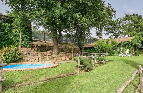 Enjoy your stay in this beautiful detached vacation home with private pool in Nepi (Rome 40 km). The house is elegantly and suggestively furnished and surrounded by nature. In every corner it gives a feeling of deep tranquility. In addition to the swimming pool, a small soccer field is also available to customers. A splendid outdoor area with wood-burning stove and barbecue makes it possible to dine comfortably outdoors. This is the ideal place to spend a vacation full of relaxation and sports (golf course only 10 km away; Via Francigena runs nearby; Lake Bracciano is only 20 km away), or as a starting point to visit the surrounding charming towns of Viterbo 30 km, Sutri 10 km, Tivoli 65 km.