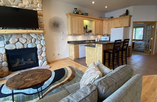 Aspen Shores is a beautiful and spacious three-level, three bedroom, three bathroom townhome with two master ensuites, both with king beds, one with a cozy gas fireplace and a soothing jacuzzi tub. For your comfort, all mattresses are name brand (Tempur-Pedic, Sealy, Ethan Allen) so you can rest easy.