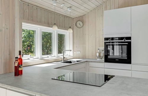 Cozy quality house on a beautiful natural plot. The beautiful sandy beach and the attractive Snogebæk with its good specialty stores and restaurants are close by. The open kitchen with all modern facilities makes it easy to prepare vacation meals. Four good bedrooms and a sleeping loft, which gives the children the opportunity to build a cozy den. In one bathroom there is massage tub and entrance to sauna. On the wooden terrace there is garden furniture to relax, here you can hear the sound of the sea. In the area there are well-developed cycling paths and good sandy beaches for those who enjoy sports.