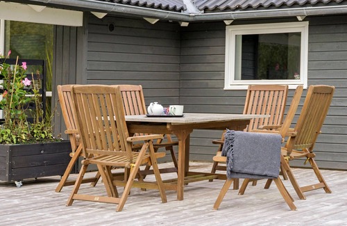 A cosy and inviting ambience awaits you in this beautiful holiday home with a large window front. The tasteful furnishings and well thought-out design provide the perfect setting in which to relax with your loved ones. The spacious living area is flooded with light and ideal for getting away from it all. The spacious wooden terrace, which surrounds large parts of the house, invites you to sunbathe, barbecue and eat outside together. Meanwhile, your children can play and run around undisturbed in the garden.