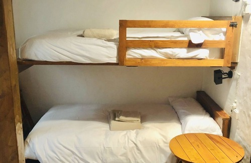 Cuenta con dos dormitorios y dos baños: Dormitorio1 con cama de matrimonio y baño en suite. Dormitorio 2 con dos literas para adultos / niños.