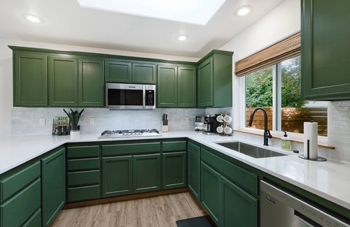However, the real gem of North Cascades Riverside Retreat lies on the deck extending off the living room - walk outside and be mesmerized by views of the cedar-lined shores of Skagit River, and Mt. Baker. Whether you're sipping your morning coffee or enjoying a glass of wine under the stars, this space is your private oasis.
