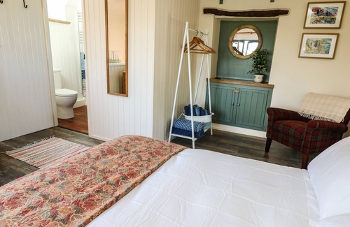 This semi-detached cottage rests in Mydroilyn, Ceredigion and can sleep two people in one bedroom.