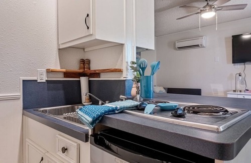 This cute triplex unit with private entry is perfect for a business traveler or a mid-term stay. Enjoy easy access to Hwy 71 with a 25 minute commute to the AIA Airport and all the fun things Austin has to offer. High-speed internet access with a dedicated workspace, as well as a large smart TV for you to login to your own streaming accounts (Netflix, etc). The outdoor space is a pine-tree covered double lot in Bastrop with a fenced backyard & back patio. This space includes a kitchenette with a stove top, microwave, mini-fridge & Keurig. If booking for 28+ days, a brief rental agreement is required. The kitchen is stocked with dishes, pots and pans, utensils, and basics like cooking spray, salt and pepper, and sugar & creamer. The double sized daybed also serves as your couch. High-speed internet access with a dedicated workspace, as well as a large smart TV for you to login to your own streaming accounts (Netflix, Hulu etc). Extra linens, blankets and pillows are provided, as well as Keurig coffee maker, hair dryer and hand steamer. Drop off wash-n-fold services available nearby for same or next day pickup. Weekly housekeeping available upon request. You will be provided with hand soap, dish soap, toilet paper, paper towels and some Keurig cups to get you started. There are cleaning products, a Swiffer mop and a vacuum kept at the property. You will have 2 dedicated parking spaces in the driveway.
