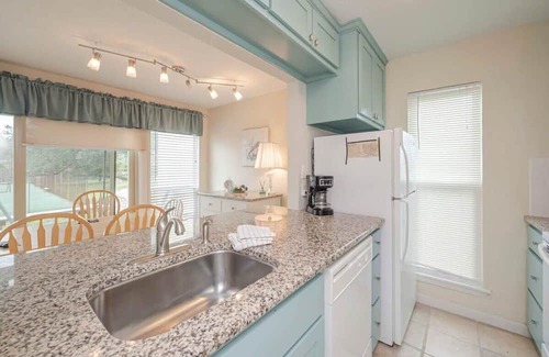 Bayfront Shores is located on the West End of the Rockport Racquet and Yacht Club Community with nearby access to tennis courts, boat parking, community pool and laundry facilities. This is an open concept living and dining with pass through kitchen entertainment. Enjoy the DVD player, gaming console and games for your pleasure. Split bedroom arrangement is convenient for groups requiring a little bit of privacy. The main bedroom has a king bed and the second bedroom has a twin size bed and a queen size bed. Step out on the back patio to take in the sport court activity or access the dedicated pier on Aransas bay. Spend some time relaxing and enjoying the coastal outdoors at Bayfront Shores.