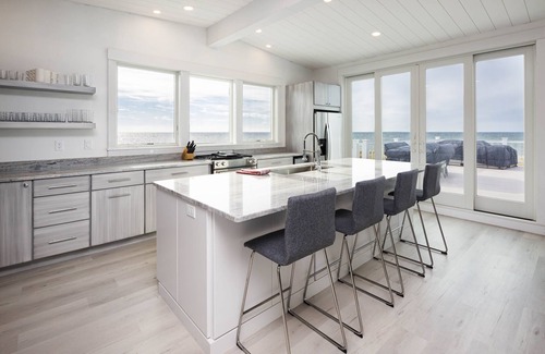 This beach house offers modern amenities and high-end finishes yet casual elements to reflect an easy-going way of coastal living that will inspire you to spend long hours lounging on the large beachfront deck or the beach itself. Simple summer pleasures are made easy by being so close to the beach like collecting seashells, sunbathing, lunches on the deck or beach and being able to watch the sun set every night.