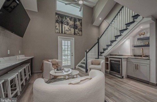 Discover the beauty of Dewey Beach from this beautifully renovated 2-bedroom, 2-bath condo with a cozy loft. Just steps from the sand, this peaceful retreat offers a queen bed, full bed, and a loft with two fold-flat sofas for additional sleepers. The open floor plan is bathed in natural light, featuring vaulted ceilings, recessed lighting, and Ozark honey tile floors. The gourmet kitchen boasts Santorini quartz countertops, KraftMaid custom cabinetry, stainless steel appliances, and a wet bar—perfect for entertaining.