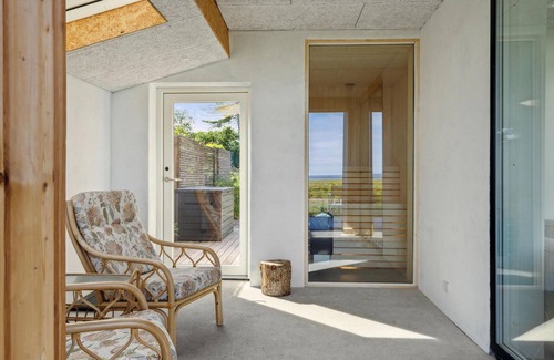 Look forward to your family vacation in 1st row to the water and feel at home in this modern house. The modern architecture and the focus of the rooms on the coast and the Great Belt combine indoor and outdoor living. Make yourself comfortable on the high-quality furniture, listen to the crackling of the fireplace and relax. You don't really need a TV here, because the view alone will enchant you. The open and bright kitchen will not only delight amateur chefs. Take your delicious meals outside and enjoy them al fresco. Afterwards, you can start your wellness program in the sauna, enjoy the view of the water and relax to your heart's content.