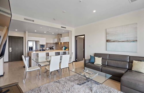 Sun-seekers will appreciate the Scenic View Penthouse Two-bedroom condo with direct access to its private rooftop with Hot Tub, loungers in the sun, a shaded living and dining area, and an outdoor prepping area with a sink and large BBQ-grill. With dreamy panoramic views of the Caribbean Sea, its two outdoor living areas blend seamlessly with its elegant interior, providing an exquisite setting for relaxation and entertainment with family and friends. The stunning views continue on the balcony that stretches across the living room and both bedrooms with a wall of sliding glass doors. The Scenic View Penthouse Two-bedroom condo is a sophisticated vacation rental penthouse located at the LeVent Beach Resort Aruba, the newest vacation rental resort on our 'One Happy Island' of Aruba.