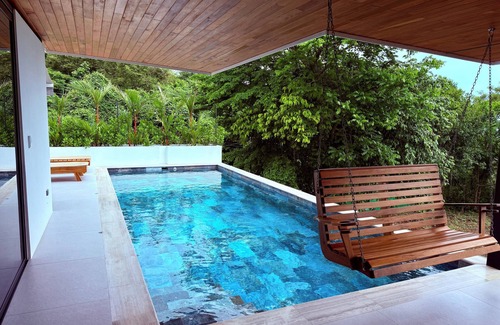 This property is a mountain view nested in a jungle reserve in a gated and secure community seven minutes by car from all the restaurants and Guiones Beach.