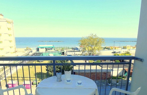 Excellent three-room apartment at Lido di Pomposa with excellent sea view and with numbered parking, located on the 3rd floor in a condominium facing the sea and in the center, composed of: living room with kitchenette and sofa bed, double bedroom, bedroom with two single beds, bathroom with washing machine and shower, large balcony with beautiful sea view, numbered parking space. 4 + 2 beds