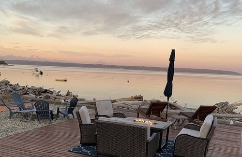 Walk straight out the front door, across the deck, tip toe over some driftwood and cool off in the water - all while looking south to Mount Rainier in the distance.