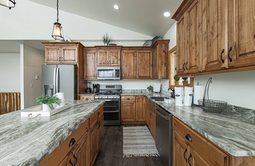 This upscale home located in the elite Steam Engine neighborhood. You can relax in the hot tub on deck and enjoy the beautiful views of Brian Head. Hit the slopes during the day with the family and come back to a home cooked meal while warming up around the fire telling the adventurous stories of your day. When skiing you can enjoy both sides of the mountain as the Navajo lifts and the Giant Steps lifts are now connected without having to take a shuttle.