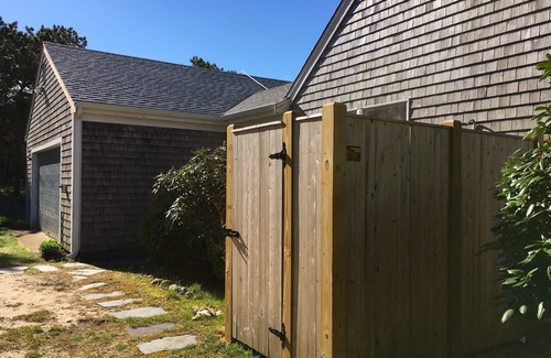 Located on a quiet private dirt road, the house is a short walk to a charming well-maintained pathway and staircase down to the beach. “Tru Haven” beach is exclusively for houses on the road with deeded access. Enjoy easy family beach days and return to watch the sun set over Provincetown and the outer Cape point. Beach chairs, beach umbrella, wagon, and other outdoor equipment (e.g. rackets, water shoes, etc.) available in the garage.