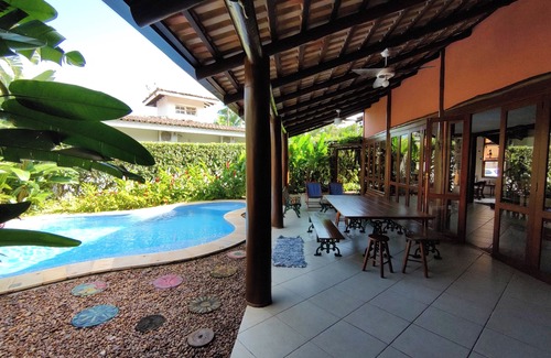 BEAUTIFUL HOUSE WITH DESIGN IN WOOD AND APPARENT BRICKS, THEME DECORATION PRAIANA CLEAN, SUITES WITH AIR COND, ANTI MOSQUITO AND PROTECTIVE SCREENS FOR CHILDREN. INTEGRATED AND WIDE ENVIRONMENTS, WITH HIGH RIGHT FOOT, VERY airy! BALCONY AND UPPER BEDROOMS WITH VIEW TO FAR DEAD. LOWER ROOMS WITH GARDEN EXIT. CLIMATED POOL WITH BEACH AND PROTECTIVE SCREEN. LIVING ROOMS, DINING ROOM AND LOWER BALCONY INTEGRATED WITH POOL, BARBECUE AND OVEN OF PIZZA. DELICIOUS !!!