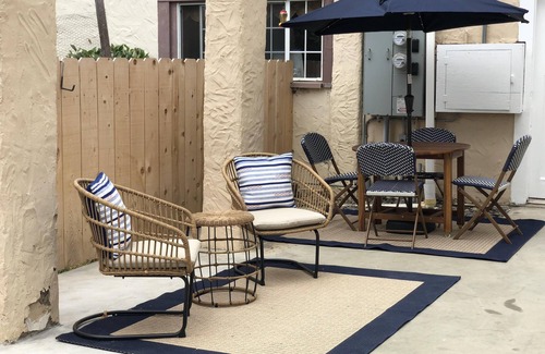 Very cute quaint beach bungalow one bedroom, one bath with full Kitchen, pullout Sofa that sleeps an additional two people, as well as a washer & dryer. Located in the heart of Leucadia (Coastal Encinitas), the home is 1/4 mile from the water and a short 8 minute stroll from local favorite Beacon’s Beach. Unit is equip with Smart television, Wifi, and Bluetooth Speaker in living room. Bedroom has a Queen bed, closet, and a dresser for storage. Fenced private patio with BBQ is the perfect oasis for relaxing evenings after a day at the beach. One reserved parking spots come with unit. Walk to the beach, restaurants, coffee shops, minutes from Downtown Encinitas, Carlsbad, and the Train Station. Don't miss your opportunity to getaway to this new hidden gem for a peaceful vacation.