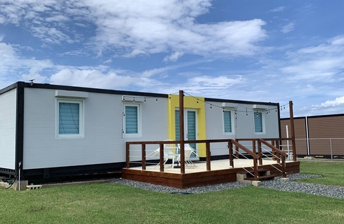 Beautiful and equipped container house located in a quiet and cozy place. Modern container with 2 rooms, living room, full kitchen, bathroom, large balcony and jacuzzi. It also has air conditioning and smart TV. The main room has a queen-size bed, the second room has bunk beds. Close to the best beaches in Isabela, such as; Jobos, Montones, Teodoro, and renowned surfing spots. Variety of restaurants and tourist attractions. 15 mns. from Rafael Hernandez Airport and Shopping Centers.