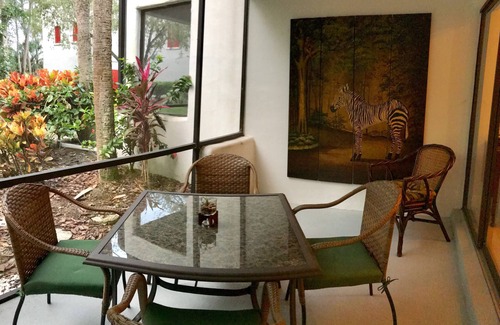 This lovely gated property butts up against a nature preserve. Sitting on your private patio you can view wildlife, banana and orange trees. The on-site club house has daily drink and meal specials. You have access to an outdoor pool, hot tub and workout room. You will be amazed what a quiet atmosphere you have at World Tennis Club. We have a 2 en suite first floor condo with a wrap around patio and screen porch. We are only 10 minutes from downtown Naples as well as the beach.