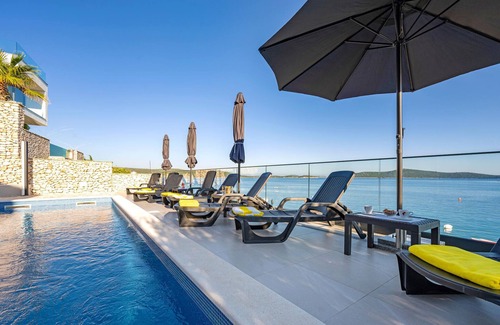 This modern and very beautiful holiday home with pool welcomes you with a fantastic location by the sea.