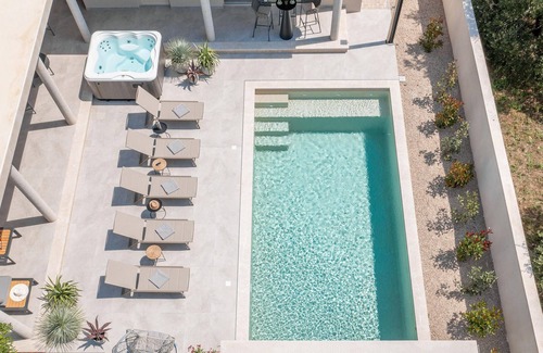 The luxury villa Utopia is located on the island of Ugljan in the Zadar archipelago. The special thing about this island is that it is separated from the mainland by the Zadar Channel, which takes you to the beautiful city of Zadar by ferry. In the hot summer months, a gentle mistral wind blows on the island, so your stay at Villa Utopia is sure to be pleasant and you can refresh yourself at any time in the sea or in the luxurious pool. The beautiful Villa Utopia is an authentic Dalmatian house that has been recently renovated in its original rustic style. It is ready to open its doors for a maximum of 12, optimally 10 people. The interior of this beautiful stone villa represents a successful combination of traditional and modern elements, creating a desirable and pleasant ambience that you are sure to enjoy. With a living area of 342 m2, it offers you everything you have been dreaming of and the total area of the property is as much as 2155 m2! It is 900 metres from the nearest sea, which is an excellent opportunity to explore the depths of the sea in the clear Adriatic. The villa is fully air-conditioned and guests will be accommodated in five bedrooms, four of them with double beds and the fifth room with two bunk beds. The villa also has 3 en-suite bathrooms with showers, and two rooms share a fourth bathroom, also with a shower. One of these rooms is located outside the villa, in a separate house. The spacious living room has a cosy corner sofa with a coffee table where you can watch your favourite films and series on TV. Right next to the living room is a beautiful kitchen with bar and a dining room with dining table and seating. The dining room leads directly to the outdoor area and terrace. The outdoor terrace will be a place to socialise, have fun and play thanks to the heated pool of 32 m2 and 1.5 metres deep. On the sunbathing lawn next to the pool, deckchairs invite you to relax body and soul and there is also an outdoor seating area where you can enjoy a coffee. Romantic evenings can be spent with a glass of fine wine in the whirlpool, which is just one of the facilities that will delight you. You don't just have to prepare your favourite dishes in the villa's kitchen, there is also an outdoor charcoal/wood grill on the terrace, which is an excellent opportunity to test your cooking skills. Next to the barbecue is a covered outdoor dining table with seating for 12. The outbuilding has a sauna and a shower, as well as a children's playroom and a fitness room. It will certainly delight lovers of active holidays who want to be in shape during their holiday. The courtyard is adorned with a Mediterranean garden, where there are olive, lemon, mandarin and rosehip trees. Guests have 4 private car parks at their disposal, while there are four more outside the courtyard. If you are travelling with your own boat, there is a fixed 6-7 m mooring and a buoy 7 km from the villa. Entertaining contents that will especially delight children and then adults are table tennis, trampoline, darts, children's basketball or football court, badminton, swings and slide. Children can also play PlayStation in the villa and play as much as they like in a separate children's playroom. By prior arrangement and on request, it is possible to organise a private chef. During your stay, a washing machine, an iron, a feeding machine and a baby cot as well as 2 separate toilets are also at your disposal. The town of Preko is the administrative centre of the island and the ferry port and is located directly opposite the town of Zadar. From the ferry port you can head towards the city centre or discover other places on the island, such as: Kali, Kukljica, Poljana, Sutomiica, Lukoran. In 2016, the island of Ugljan was declared a hidden gem by the Best European Destination portal. For those who want to start with cultural and historical research, Zadar is only a 20-minute ferry ride away. It is a famous tourist destination that will delight you with its delicious gastronomic offer, musical performances and entertainment until late at night! Surrender to the beauty of Dalmatia and take the memories of your dream holiday with you! Pets are allowed in this accommodation at the owner's discretion or for a fee.