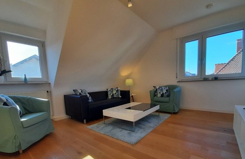 In this light-flooded 3.5 room attic apartment with a beautiful wall opening you will find everything you need for a pleasant stay. With the public transport you are quickly on the Königstraße, at the museums and sights of Stuttgart. The Löwenmarkt underground station is 350 meters away. From there you can be at the main train station in 18 minutes, in the middle of the city or in 16 minutes at the Porsche Museum. At the Löwenmarkt you will also find several supermarkets, drugstores, bakeries, butchers, restaurants, snack bars, hairdressers, ... In short, they can supply themselves with everything on foot. Nevertheless, you spend the night quietly and close to nature. The apartment has a spacious, nicely furnished living room. The two cozy, modern bedrooms with new mattresses enable you to enjoy peaceful nights. There is also a fully equipped kitchen with a seating area for 5 people in the apartment. Here you will find a dishwasher, oven, induction cooker, fridge, capsule coffee pad machine, kettle, toaster and of course all dishes and cutlery.
