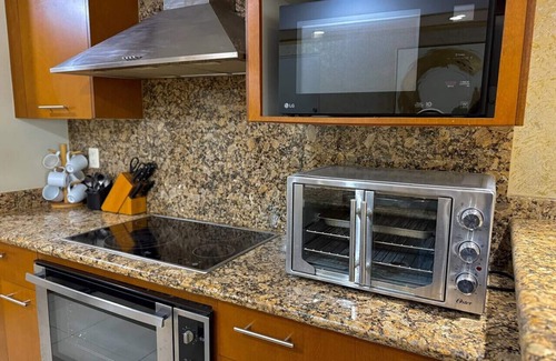 Air conditioning and a desk are featured at this 3-bedroom, 2-bathroom rental. Connect to the WiFi, or get cozy in front of the TV. The kitchen is equipped with an oven, a stovetop, and a refrigerator, as well as a coffee maker, a microwave, and cookware. Other amenities include bed sheets and an ironing board.