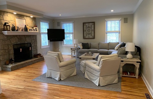 Beautiful 5 bedroom, 6 1/2 bathroom colonial house located in Westport, CT. 5 minutes from Compo Beach. It is a private relaxing summer retreat with a pool, outdoor shower, fire pit and hot tub. Large spacious kitchen which leads right out to the pool area, dining room, 2 living rooms, and a finished basement.