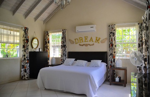 The home comes with ceiling fans to the living room, kitchen, garden room and dining area. There are two double bedrooms with ensuite bathrooms and built in wardrobes. Both bedrooms have air-conditioning. The living area is open plan with a spacious living room, dining area, garden room and a full kitchen. You can relax on the front patio watching the humming birds feeding or on the rear patios enjoying the tropical garden and the cooling Caribbean breezes. Swim in the pool or at one of the nearby quiet beaches. The covered area adjacent to the pool provides an outdoor area where you can dine in comfort, enjoying the balmy evenings and the chorus of frogs and crickets. There is also a shaded seating area in the garden for relaxing or enjoying a cocktail. (Cocktail shakers provided)