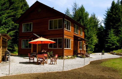 Enjoy a secluded retreat with a hot tub. This contemporary chalet in the Redwoods is bathed in sunlight and is a short stroll to the Mad River and only minutes from HSU and downtown Arcata's local shops, restaurants, grocery stores, and Community Forest.