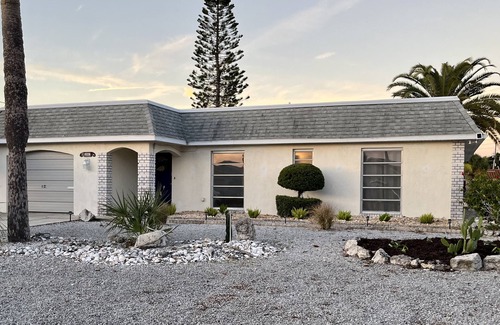 Our floating dock is suitable for launching kayaks (we provide 2 with life jackets) and docking your boat. If you'd like to bring your boat, there are local boat launches and you may tie up at our dock. Public launches not too far. You may park the boat trailer in our driveway but no parking on the street. No swimming or diving is allowed in the canal. To reach the gulf from our dock, you'll need to cross under the Floramar bridge. Clearance is 6ft at normal high tide and 10 and normal low, but remember to keep an eye on tide charts since the gulf will dictate if tides have a bigger swing on specific dates. Most pontoons, fishing boats, and skiffs are fine as long as they don’t have a tall center console. The single car garage is a bit antique. It is connected to the house with access through the laundry area but is manual operation only so I suspect most guests will park in the driveway. Sunwest Golf Carts will deliver to the house if you'd like to rent a club car to cruise around in (approx $100/wk - call them for details though).