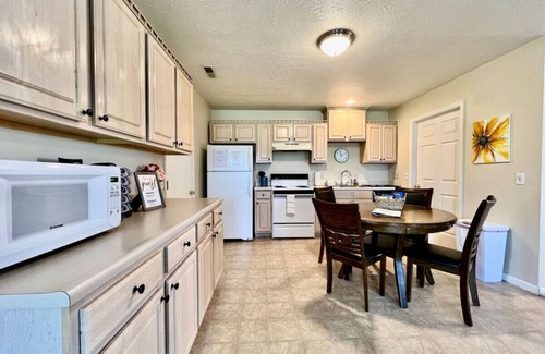 When you walk in the door you are greeted by our living room that opens up into the dining area and kitchen area. You`ll find the laundry room with washer/dryer combination just off the kitchen. As you travel down the hallway you`ll find a full bathroom with a shower/tub combination that all three bedrooms share. All bedrooms have smart TVs so you can watch your favorite shows before falling asleep - two queen bedrooms and one twin bunkbed room. If you need to get some work done, we have included a desk/chair in the bunkbed room.