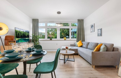 Stylish 60 m² studio directly on Kurfürstenwall: Step out the door and you're in the heart of Recklinghausen's city center! On the 2nd floor with elevator, free underground parking. Open-plan bedroom + sofa bed, two smart TVs with Netflix. New bathroom with walk-in shower. Fully equipped kitchen with coffee machine and dishwasher, washer-dryer in the utility room. Fast, contactless check-in