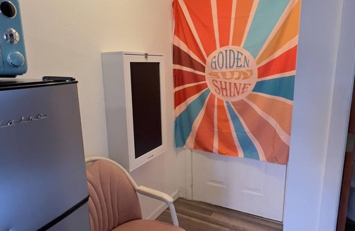 Feeling nostalgic? Go back in time with this groovy airbnb! Enjoy your favorite past and present tunes on the featured record and cassette players while making use of the fold out workstation. This one bedroom, one bath unit includes a full kitchen with appliances. Unit has a private entrance with patio seating. The unit is conveniently located down the street from the Lakeland Linder Airport, popularly known as the location of Sun n’ Fun and is a short drive away from downtown Lakeland.