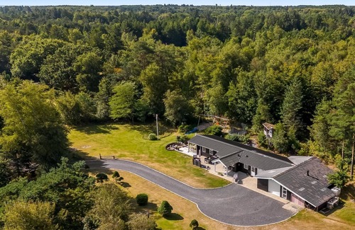 Single-family house, built in 1968. 850 m from the sea. Private: property 5'240 m2, well-kept garden, indoor pool (3 x 6 m, 2'1.8 m2, depth 130 - 130 cm). Terrace (50 m2), barbecue, children's playground (slide, swing). In the house: trampoline, washing machine. Parking at the house. Grocery 3.8 km. Golf course 11 km. The owner does not accept any youth groups.