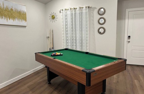 Experience comfort and convenience in this stylish 3-bedroom home, perfect for families, groups, or business travelers. The space features a 75” TV with cable, high-speed internet, a pool table, and brand-new appliances. Enjoy a fully equipped kitchen, a cozy 3-bathroom setup, and the convenience of an in-unit washer and dryer.