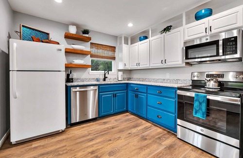 This serene newly remodeled 2 bedroom 2 bath bungalow is sure to be your best stay of the year! There is so much to enjoy including a large deck overlooking the Brazos River that guests are allowed to fish, the sights and sounds of wildlife, a fully stocked kitchen and more. The best part is that you are still close to downtown Waco and can get to the Silos within 15 minutes. Can this really be true? Yes!!! Come enjoy!