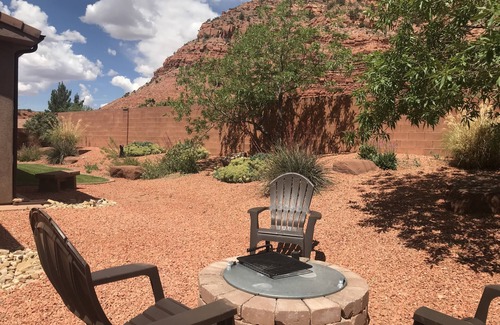 Bring your binoculars! House sits at the foot of red canyon wall. Our lovely 3 bedroom, 2 bath home can serve as your base camp for visiting 3 national parks or hiking on the 3 well marked local trails starting just blocks away from our home. For a change of pace, visit the local museum to learn more about Kanab's role in western movies and t.v. shows, or take a 10 minute walk to the local aquatic center and playgrounds. When it is time to "kick back", enjoy the neighborhood fitness center, indoor pool or outdoor pool, or just relax on our covered porch and soak in our amazing mountain view. Master bedroom has luxury king bed, 2nd bedroom has queen bed, and 3rd bedroom has two twin beds (can be made up as king for small fee - just ask) for up to 6 guests. High speed WIFI provided. Sorry, no pets allowed.