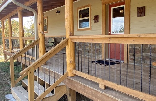 Buffalo Sky Cabin is just minutes from Buffalo National River and Marble Falls Nature Park. This secluded cabin on a 500 acre ranch (which also encompasses Sulphur Mountain), is surrounded by the Boston Mountain range. Some of the best floating, swimming, biking and hiking to be found anywhere is both on-site and nearby, with a 95,000 acre 132-mile long national river just down the road (2 miles). Hunting and fishing adventures also abound. The night skies are amazing and the cabin features over 800 square feet of covered porches with stunning mountain and valley views, and an outside seating area with fire pit.