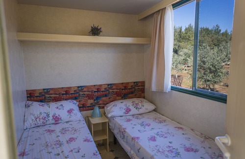 Within the estate, guests have access to a shared swimming pool with a relaxation area equipped with deckchairs and umbrellas. There is also a children's play area with slides and games. Parking is available outside the structure.