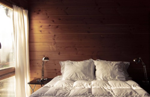 On the first floor the Bungalow has a living room and a dining room with a fireplace and a fully equipped kitchenette with fridge, dishwasher, stove and oven, microwave, wand and coffee machine. On the second floor there are 2 bedrooms, the master bedroom with double bed and another bedroom (mezzanine) with two single beds and still a bathroom.
